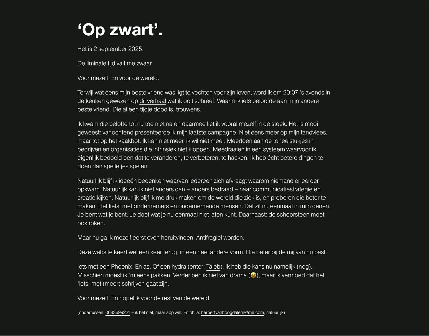 Dan overleed mijn voormalige beste vriend ook nog eens. Ook geen sinecure. Zeker niet gezien de complexe situatie, deels ook wel wat gelijkenissen en onze getormenteerde verhouding. Dan kan je er wel ‘n stukkie over schrijven (dat recht had-ie:). Maar daarmee ‘geef je ‘t nog geen plekje’ - zoals dat dan heet. Zeker omdat de tand des tijds inmiddels ook al een beetje aan mij begint te knagen. En ik nog wel van plan was ‘t een en ander te doen en te brengen hier (nee, niet alleen op LinkedIn). Dan ga je je toch wel even op je achterhoofd krabben.